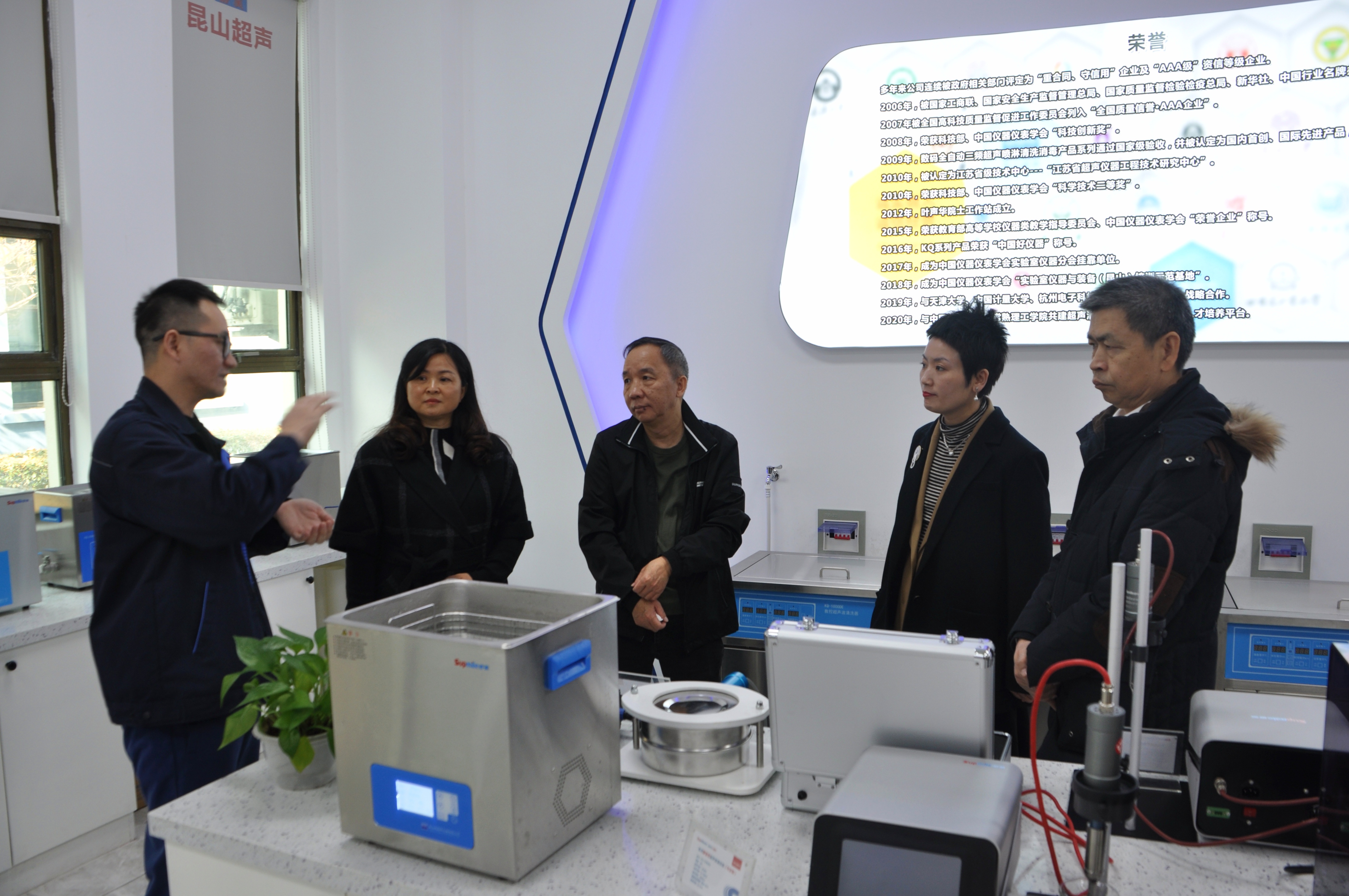 中國儀器儀表行業(yè)協(xié)會秘書處相關領導鄭朝松、程紅和協(xié)會部門領導參與考察,我公司董事長總經理顧芬英、常務副總經理劉立人等陪同參觀。